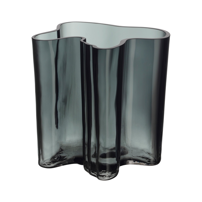 The Aalto vase 200mm in dark grey is a stunning example of Finnish craftsmanship. Mouth-blown into wooden moulds that can only be used 50 times, each vase boasts a unique, vibrant surface. Crafted by a team of skilled artisans, its deep grey tone makes it an eye-catching centrepiece, ideal for taller floral arrangements.
