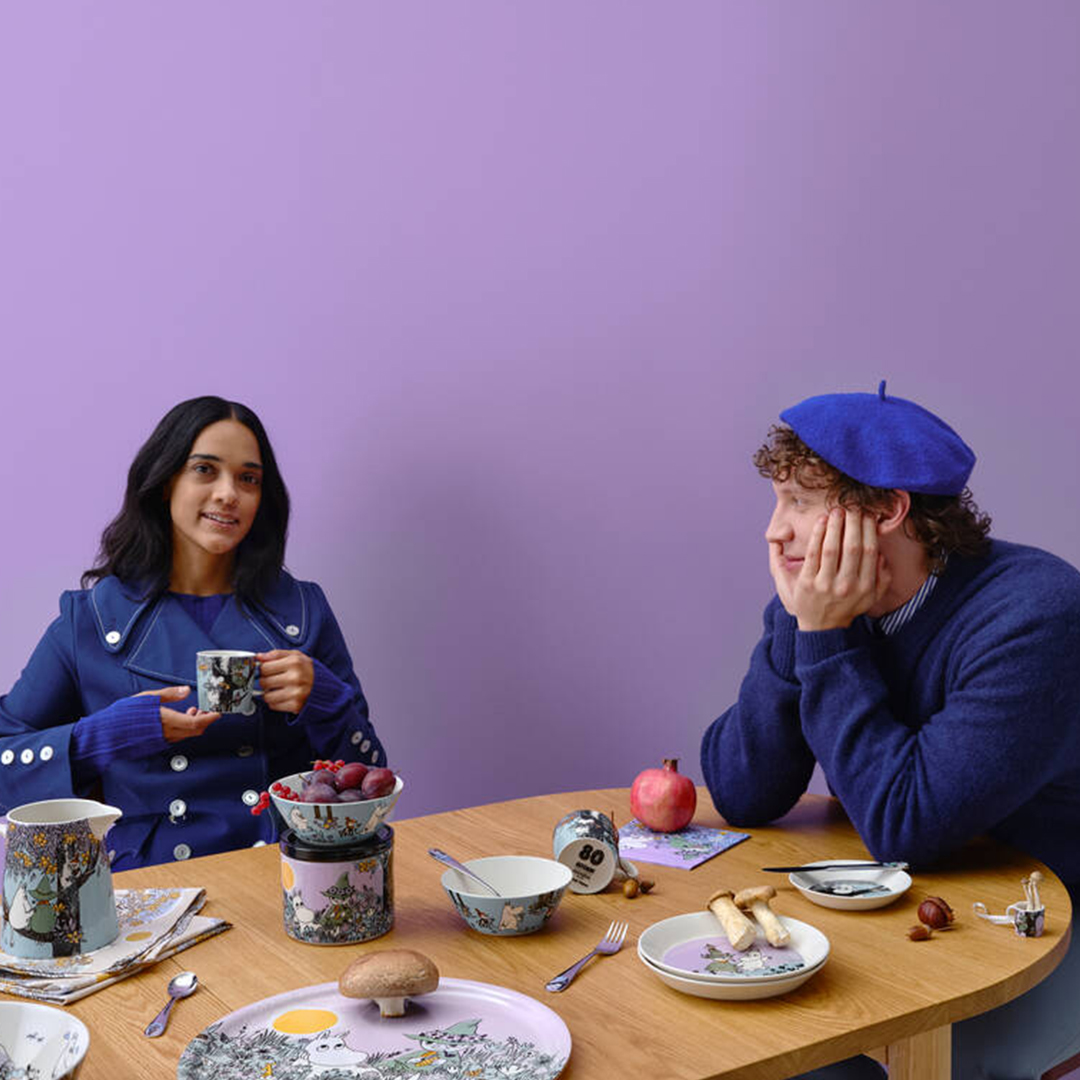 The Moomin 80 collection celebrates the values that connect us to the Moomin stories ? love, friendship, and acceptance. The collection honors the adventurous trio of Snufkin, Moomintroll, and Little My. Moomin Arabia mini mug, Friends Forever