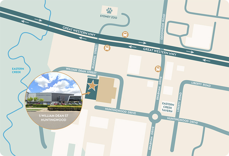 For those taking public transport, catch the 729 Bus from Blacktown Station Stand E. Alight at Great Western Highway before Rudders Lane and walk 6 minutes to the warehouse site. Click on image below to get directions.