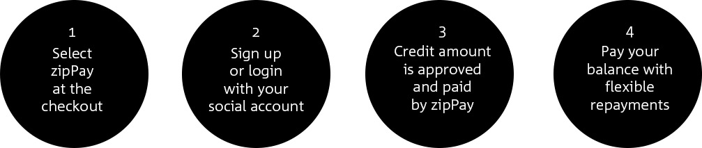 To create a zipPay account all you need is a facebook or PayPal account. Subject to approval, this process is very fast. If approved you can complete your purchase and pay for it later!